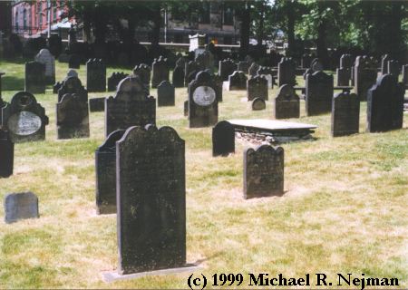 Most of the older stones are slate that was quarried and hand-carved around Massachusetts Bay and shipped to Halifax before the Revolutionary War. |